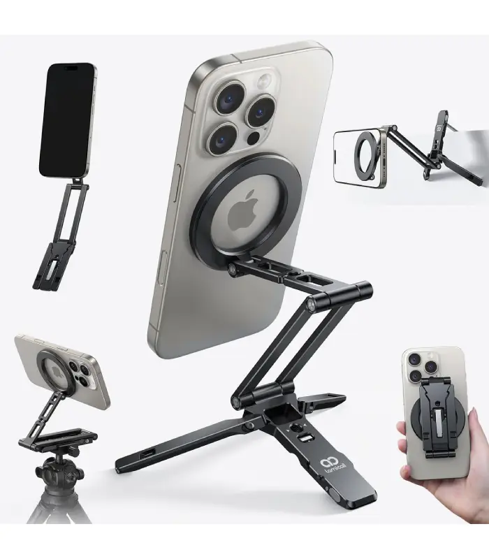 Lamicall for Magsafe Tripod Stand – [Ultra-Compact] Aluminium Magnetic Phone Tripod for iPhone 17/16 Pro Max, Flexible Cell Phone Mount Gift with 1/4″ Screw, Arca & Hook Accessories Women Men Black